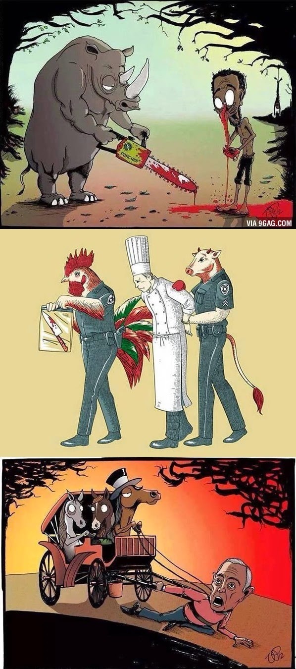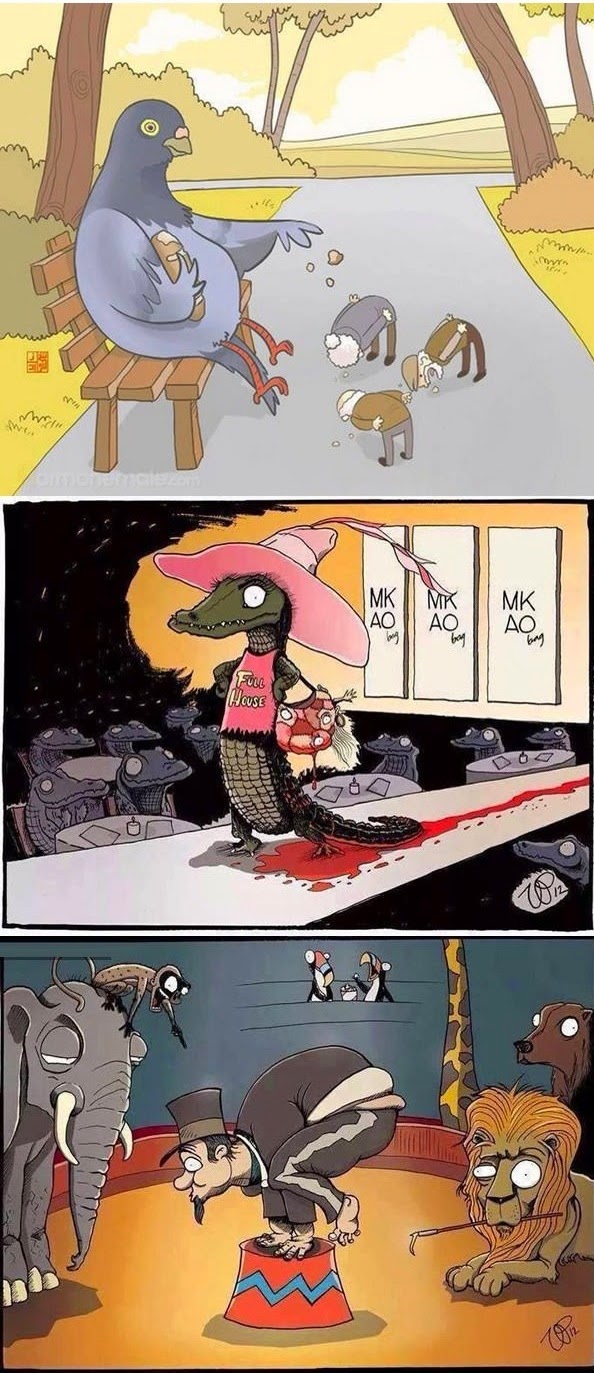 Εικονογραφιμένες καταστάσεις που μας περνάνε ένα δυνατό μήνυμα για το πόσο πολύ εκμεταλλευόμαστε τα ζώα και πόσο πολύ ο άνθρωπος έχει παρατραβήξει τη σχέση του με αυτά.